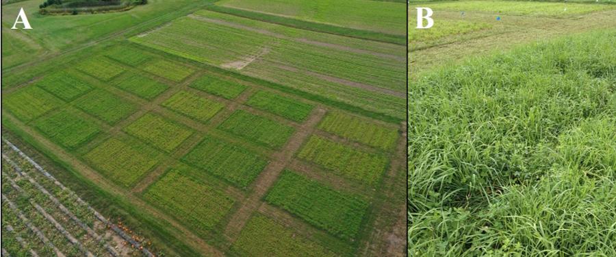 The results described below come from a field experiment that was established at the UNH Kingman Research Farm in the fall of 2018. The data come from the 2019 growing season. Interestingly, we had attempted to establish the same study at a different site the prior fall; however, by the subsequent spring it was clear that the legumes had failed to establish properly, likely due to the unfavorable weather we experienced during that period, illustrating just what a challenge establishment can be sometimes. Nevertheless, we have our first full growing season of data to share with you. Keep in mind that a single season of data cannot tell us too much about persistence over time. We expect that the data we will continue to collect this season and the next will be very illuminating in that regard. That said, we think these preliminary data are quite interesting and suggestive of some general trends associated with harvest practices that might be useful for farmers to investigate in their own systems. Here is what we did and what we are seeing.