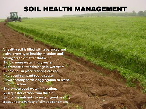 But, in a nation where ‘health care’ means ‘disease care’ with precious little legitimate ‘health promotion’, the same is true with soil. The promotion of soil health is not in the myriad of products you can buy. It is in the things you do, the health-promoting practices you use, always holding this core truth in mind: while soil chemical, physical and biological characteristics are all important, but the greatest of these, and the most responsive, is biological.