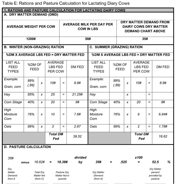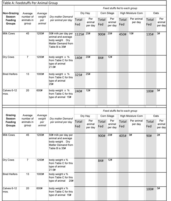 Using the example from the ration in Table A for the milk cows. See Table E.