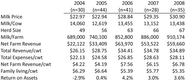 The results indicate that net farm revenue (before charged for unpaid family labor) increased a bit in 2008 but did not hit 2006 profitable levels. Despite rising feed costs, organic farmers fed less purchased grain but maintained production levels. While challenges kept farmers on their feet in 2008, the challenges for 2009 were greater with increased charges for hauling, still high feed costs, and marketing quotas.