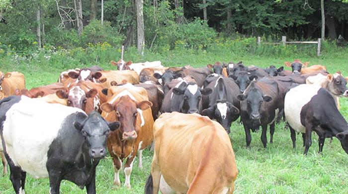 Growing up, Nathan remembers being on a first name basis with the local veterinarian but now his family rarely calls a vet except for the occasional difficult calving. “We try to create situations where animals live right and thrive and we will move an animal out if she doesn’t do well within our system,” he explained. Acute cases of mastitis are rare and they will dry off a quarter if necessary and he has only had to treat one cow for milk fever in the last two years. Conception rates vary from season to season but the majority of the cows breed back at the appropriate interval. Although he is not opposed to vaccinations, they do not strike him as a benefit. The only significant herd health issue is an as yet undiagnosed foot problem that causes lameness in 5 to 6 cows a year. It is neither foot rot nor hairy heel warts. Most cases clear up but each year one cow has an extended period of infection. He mulled, “it is really a thorn in our side at this point.” Despite this issue, overall herd health is excellent.